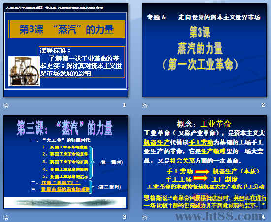 共51张。课件主要分探源工业革命、感悟工业革命、回首工业革命等三个展厅进行讲述,内容丰富,练习巩固。