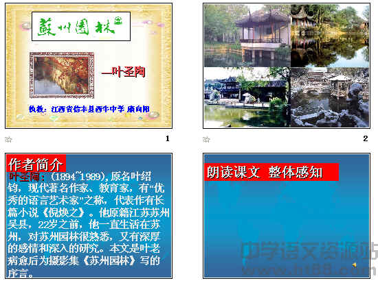 共38张。作者简介、整体感知、思考问题、园林图片欣赏、图示结构、探究拓展。最大的特点是图片精美丰富,使用得当。