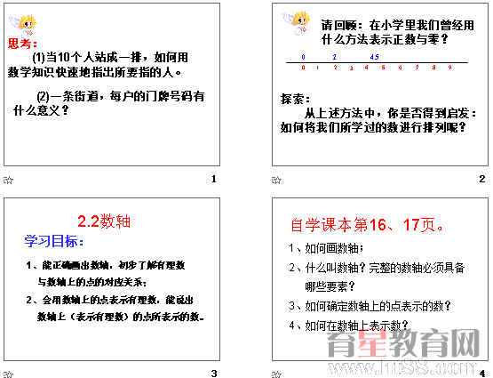 数轴,创设情境导入课题,设计科学,讲练结合,适合新课教学。