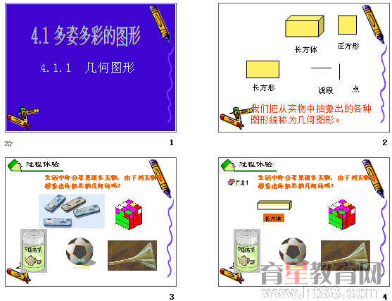 几何图形,从实物图片抽象几何图形,直观形象,适合新课教学。