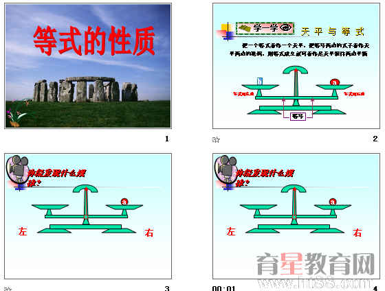 等式的性质,借助天平探究等式的性质,模拟演示便于理解,适合新课教学。